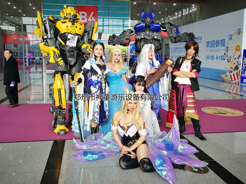 【遇见】#变形金刚#,新款可穿戴游乐设备人偶服装——神童机器人变身衣,擎天柱、大黄蜂、大红蜂、威震天……各种变形金刚盔甲造型,九游老哥J9俱乐部官网广州公司包总莅临风靡2019第六届武汉国际电玩及游乐游艺展览会现场。